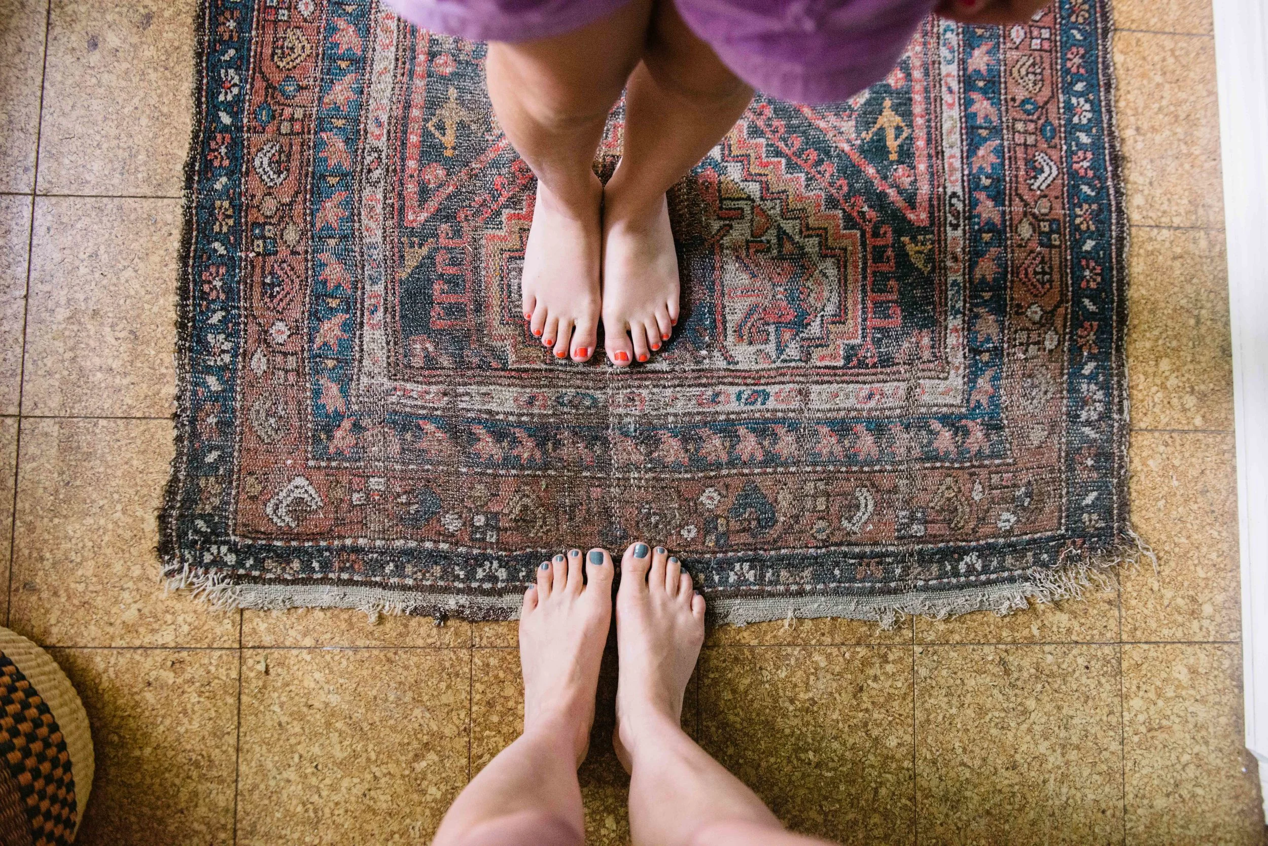 As I waded through the house of someone unknown to me I felt a story unfold that I had not been told. It was a story of a couple that loved to travel, a possible AD man or photographer, they were collectors of art and fine rugs. I could see that this was their retirement home, but as I saw every mid-century modern piece and a hand stitched quilt for every season I knew that their first home must have been something special. A badminton set with enough gear to host quite the party was forgotten in the basement corner. Unframed portraits that were so beautiful that words can not describe. As soon as I saw this rug that most ignored I knew it was just the piece that I was wanting for our very own home. I am sure they bought it on their travels or so my version of the story goes. They found it worthy to be a piece to bring to their retirement home, to the home they would one day pass on in. It was a value to them whether it was bought for a special memory or a piece they just appreciated. I am grateful for it now to live in our home where the kiddos will pass upon it dozens of times a day. It will now rest here and we will be able to build upon the memories that this rug had started.